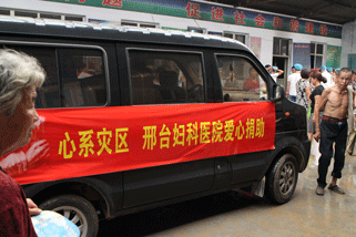严峻的汛情形势,引起了中央、省、市、县级各级领导的高度重视,也一直牵挂邢台妇科医院全体工作人员的心。7月24日,在“心系灾区,爱心捐助”公益小组的组织下,由邢台妇科医院医疗团队带队,联合爱心志愿者,组成了捐助团。他们带着饮用水、食物、消毒用品等物资前往受灾地—任麻村。